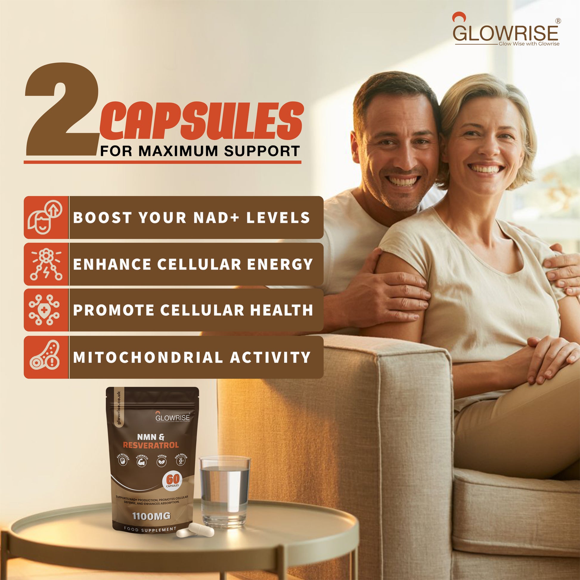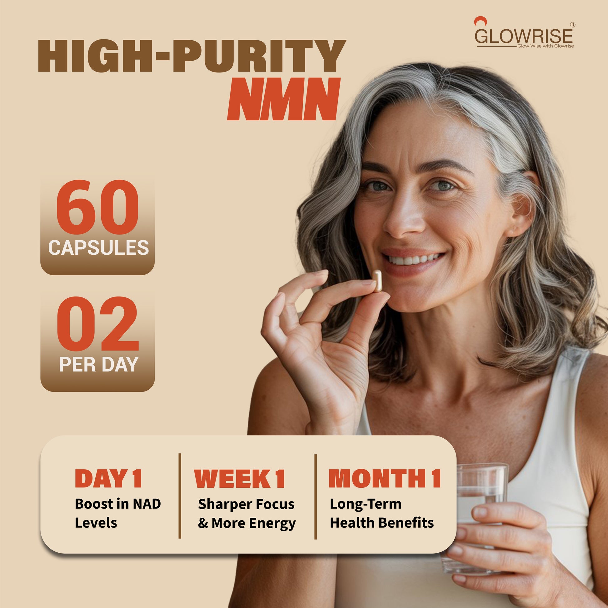 Glowrise NMN &Trans-Resveratrol Supplement 1100mg with Black Pepper Extract - Cellular Energy Booster - (60 Count (Pack of 1))